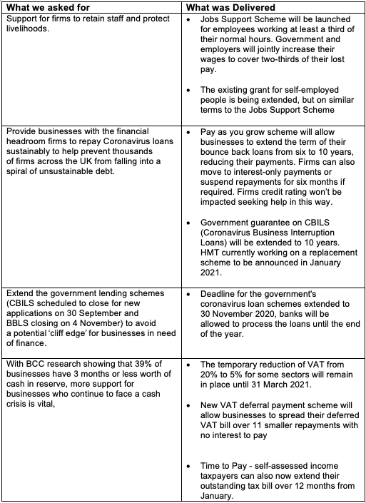 Chambers of Commerce have been calling for greater support for businesses as the Coronavirus resurgences. The Chancellor responded to a number of our concerns in his Winter Economy Plan.