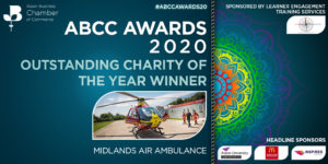 Both awards were presented to Emma Gray, fundraising and marketing director for Midlands Air Ambulance Charity virtually on Thursday 26th November 2020 at the Asian Business Chamber of Commerce Awards. The awards come in addition to the charity being shortlisted for the Adaptability and Innovation Award at the Black Country Chamber of Commerce Business Heroes Awards, earlier this month.